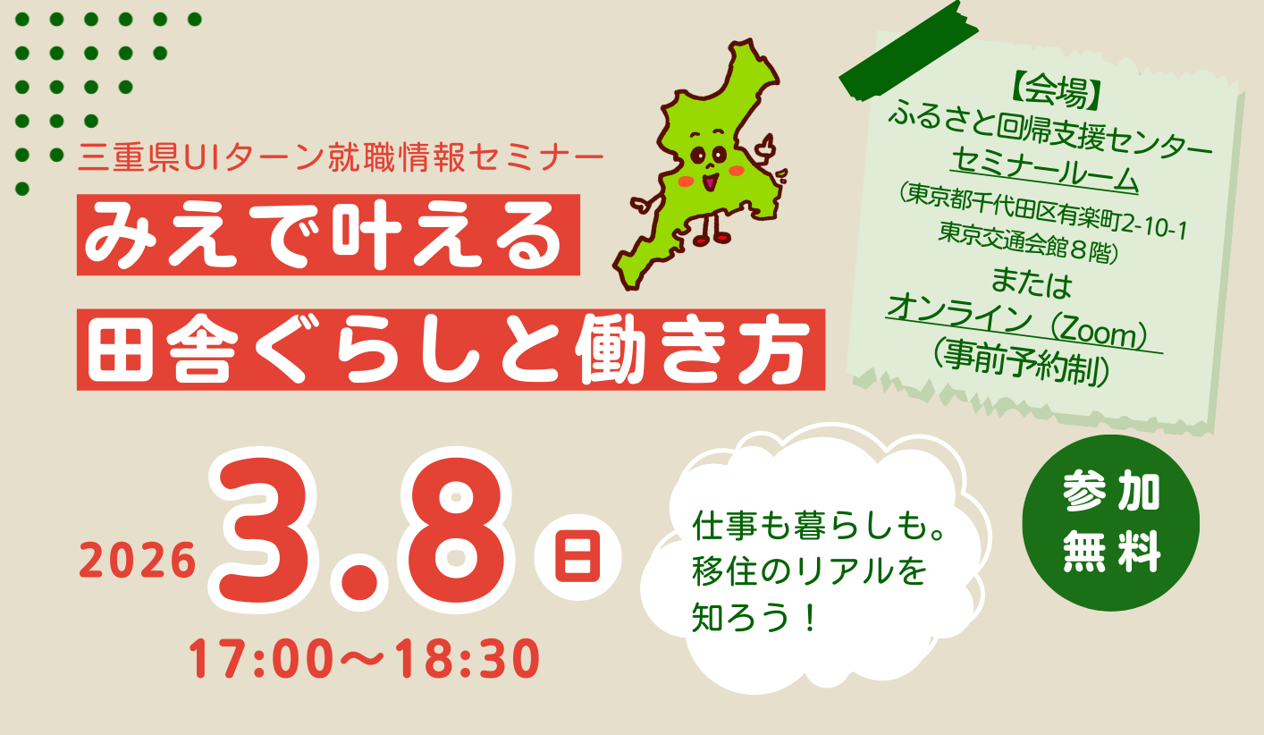 | 名称 | みえで叶える田舎ぐらしと働き方 |